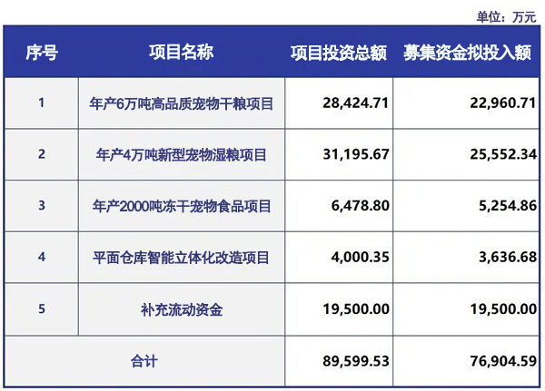 本次中宠股份公开发行可转换公司债券将募集资金总额不超过人民币76,904.59万元,拟投资以下项目: