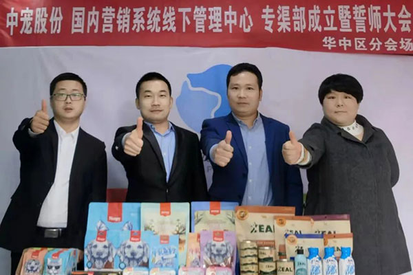3月30日,中宠股份召开“国内营销系统线下管理中心-专渠部成立暨誓师大会”。受疫情影响,本次大会采用总部与各地分会场连线的方式举行。中宠股份创始人、董事长郝忠礼携集团相关领导出席,各地销售团队线上连线参与,同时,中宠股份经销商合作伙伴也以视频的形式表达祝贺。