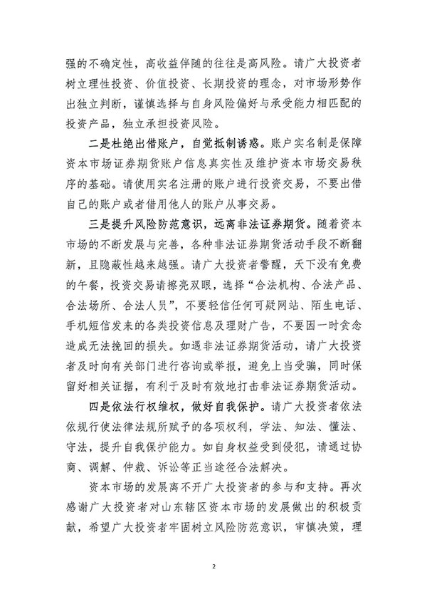 理性认识市场 投资量力而行—致广大投资者的一封信