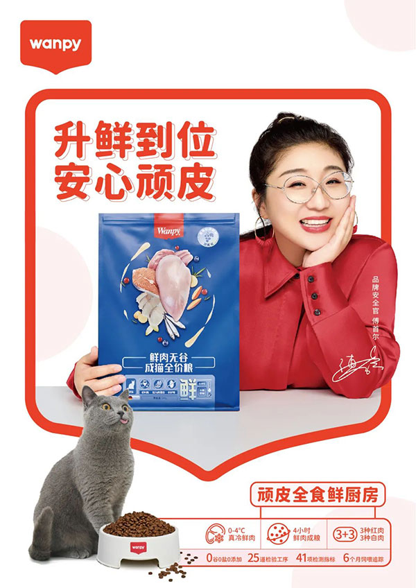 2021年,顽皮将品牌主张立足在“鲜”,推出鲜肉无谷类产品矩阵——食材直采属地人类食品级鲜肉,以0-4℃冰鲜冷藏车运输,2小时便可抵达工厂,经过布勒双螺杆膨化技术,4小时鲜肉成粮。速度之外更有安全保障,每一款顽皮鲜肉粮都需在经CNAS审核认证的检测中心经过25道检验工序,符合41项检测指标,检测结果,全球同标。