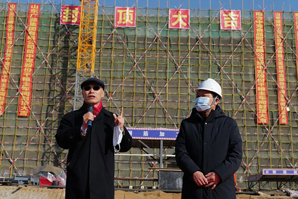 上午9时58分,封顶仪式由江总主持开幕,江总首先代表中宠股份向参与工程建设的施工、监理、设计、勘察等单位的建设者们表示热烈的祝贺和衷心的感谢!