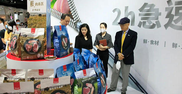 签约结束后,京东一行来到了中宠股份自主品牌Wanpy的亚宠展展台,对新亮相的Wanpy新品主粮产品进行了深入地了解。