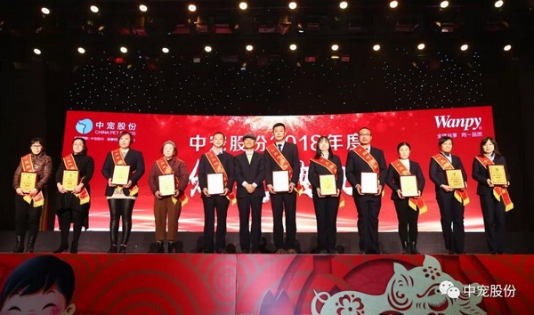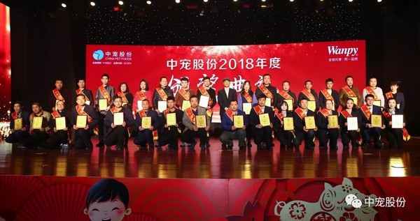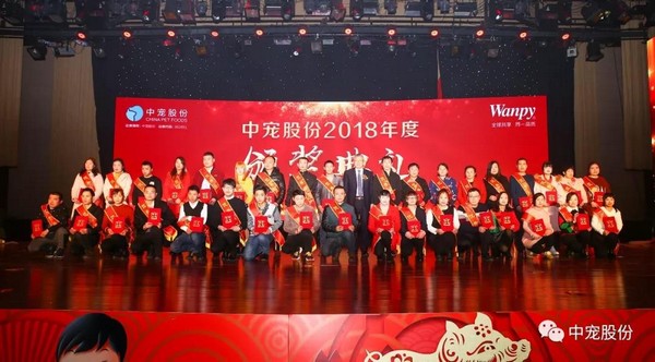 回顾中宠股份2018年的历程,每一次进步和成长都离不开他们,一群可爱可敬的中宠人。经公平、公正的评选,共评选出“总裁特别表彰”1位、”二十年满勤永续员工“2位、”十五年满勤永续员工“11位、”十年满勤永续员工“32位、“优秀员工”151位、“最佳销售团队”、“最佳支持团队”、“效率优胜团队”、“最佳安全生产团队”,并在盛典现场进行表彰颁奖。站在舞台上的他们,熠熠生辉,他们用自己的榜样力量激励着在场的每一个人。