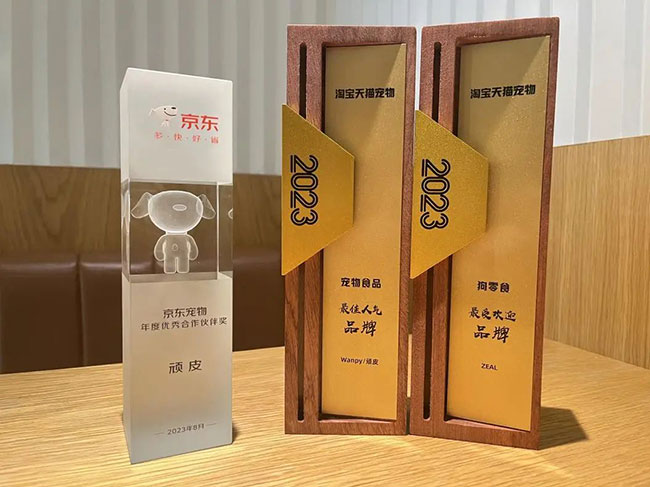 三季度里,中宠股份及旗下核心自主品牌wanpy顽皮®、新西兰ZEAL真致®接连斩获天猫宠物、京东宠物、亚宠官方颁发的多项大奖,卓越表现收获平台及行业肯定。其中,中宠股份获亚宠官方颁发的“亚宠年度大赏·年度中国质造大奖”。wanpy顽皮®品牌收获“淘宝天猫宠物平台最佳人气品牌奖”“京东宠物年度优秀合作伙伴奖”和“亚宠年度大赏·年度实力食品品牌大奖”。不仅如此,wanpy顽皮®品牌上半年天猫大牌日合作当红嘻哈歌手KNOWKNOW的营销案例也在亚宠年度大赏中获得“年度营销创新典范大奖”。