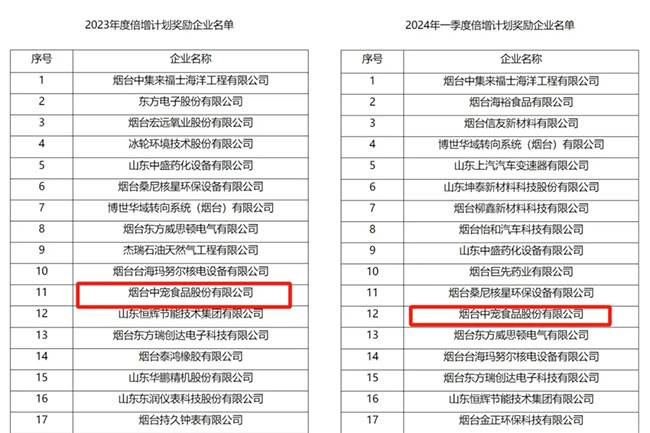 早在2022年8月,烟台市委、市政府首提“倍增计划”,并正式印发《烟台市实施企业倍增计划推动先进制造业高质量发展行动方案(2022—2025)》,共计筛选252家规模以上制造业企业作为重点倍增培育企业。方案印发后,中宠股份作为龙头骨干型倍增企业,勇打头阵,聚焦宠物食品创新,精耕细作,持续巩固产业链、供应链的安全性与稳定性。2023年,中宠股份整体营收达37.47亿元,相比2021年实现130%的快速增长。