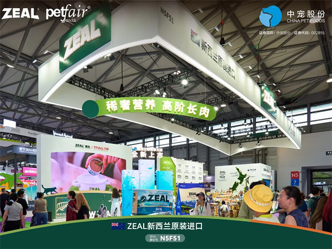 中宠股份旗下新西兰高端宠物食品品牌新西兰ZEAL真致®,品牌VI视觉焕新升级,展位整体以新西兰的自然原生风貌和标志性国家符号为灵感,统一视觉风格,进一步强化新西兰高端宠物食品的品牌心智。借本次亚宠展契机,新西兰ZEAL真致®向消费者全方位展示作为新西兰高端宠食品牌的全新面貌,以更明晰、更包容的形象,赢得全球追求品质的高端宠物主的认同与信赖。