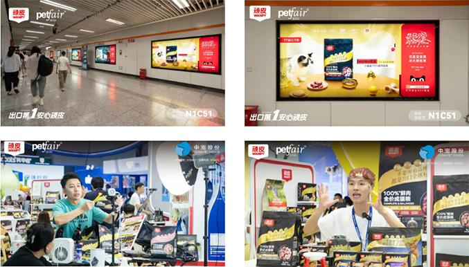 在传播形式上,WANPY顽皮®又有新的突破:展台整体取消固定直播间,全场景皆可作为直播区,实现全天候、多平台互动,打造沉浸式消费体验。通过在人流量大、覆盖面广的地铁站点投放广告,品牌将“精准营养”的理念以及优质产品信息传递给更多消费者,进一步扩大了品牌影响力,让更多人认识到WANPY 顽皮®在宠物食品领域的专业与用心。